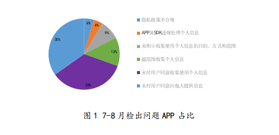 2022年7至8月,各基础电信运营企业营业网点共检测APP24.3万款,检出“爱学生”“监控眼 ”“形色”等问题APP23款,包括隐私政策不合规1款、APP及SDK违规处理个人信息1款、未明示收集使用个人信息的目的、方式和范围2款、超范围收集个人信息3款、未经用户同意收集使用个人信息8款、未经用户同意向他人提供信息8款(详见附表1)。