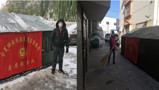 11月5日夜间,银川突降大雪,气温大幅下降。面对降雪降温的恶劣天气,他们没有怨言,没有退缩,始终坚守岗位,在联络群中互相关心鼓励,在寒风中一次次加固值班帐篷、清扫屋顶积雪、铲除周围结冰。经过数小时的奋战,原本冰雪覆盖的小区道路变得清洁通畅起来,帐篷四周也变得干净整洁,为辖区居民解决了路面湿滑、帐篷漏水等后顾之忧,暖心之举也得到了封控居民的频频点赞。