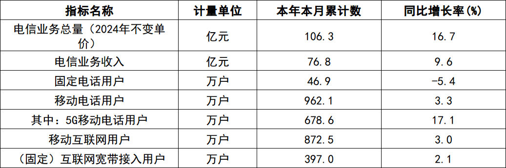 2025年10月宁夏通信业发展情况