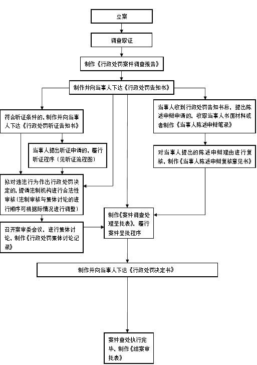 立案——调查取证——必要时进行听证——作出处罚决定——执行。